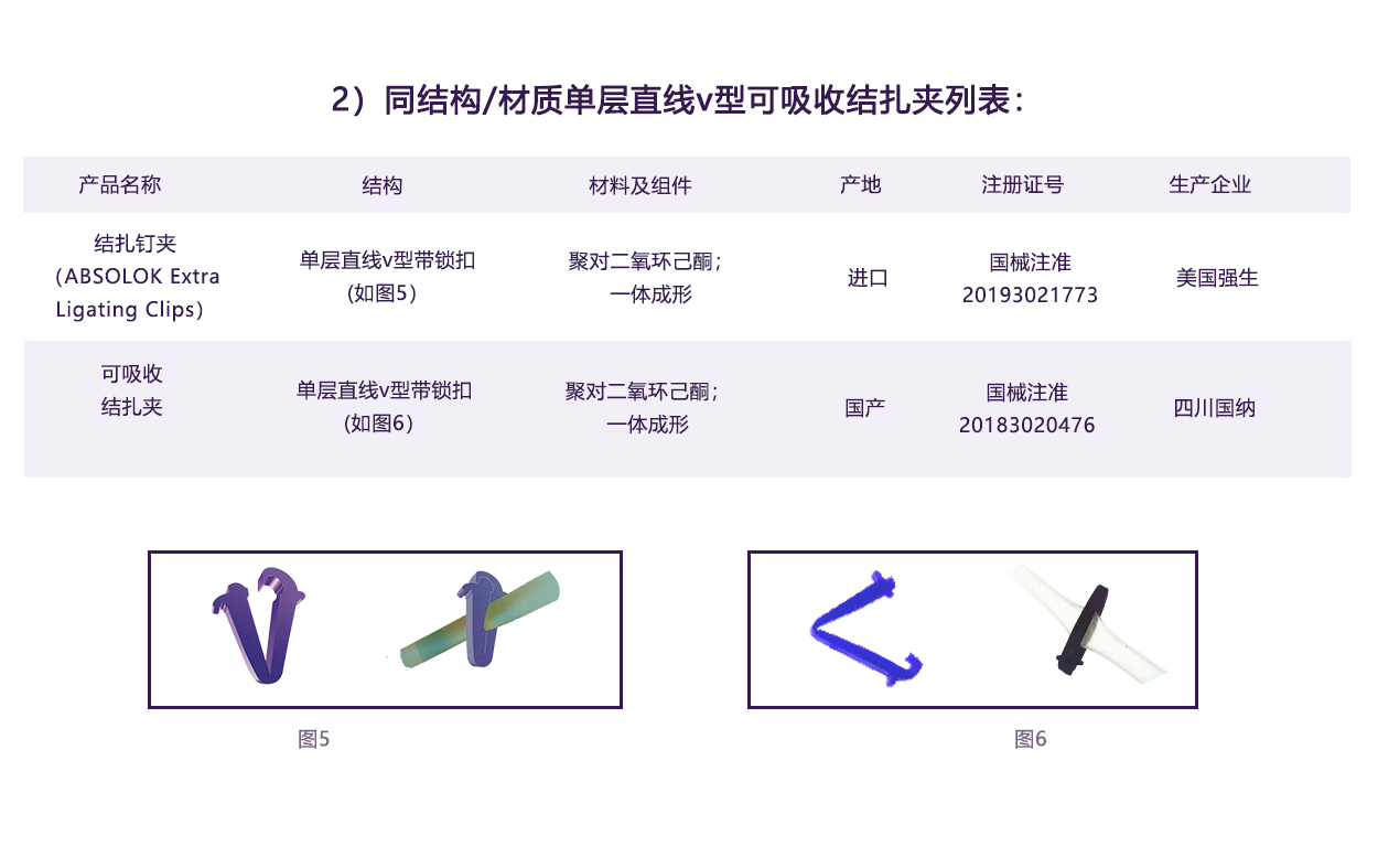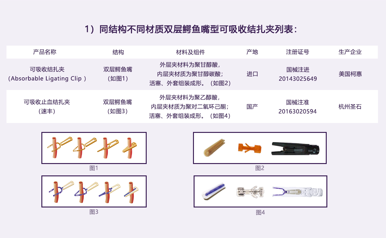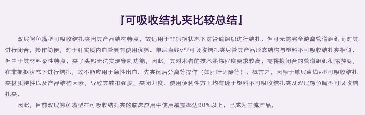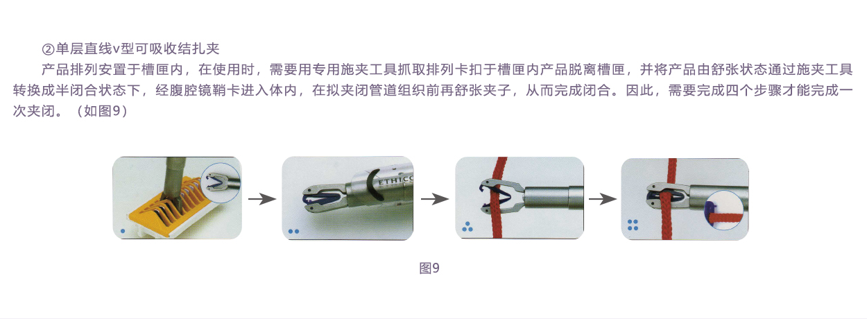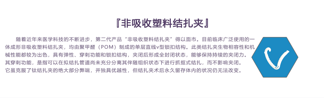 內層夾用醫用染色劑,與進口單層V型可吸收夾顏色一致,提高其可視性。