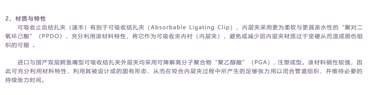 無銳角不易損傷血管或其它組織隱患,降解速度與外層夾一致。